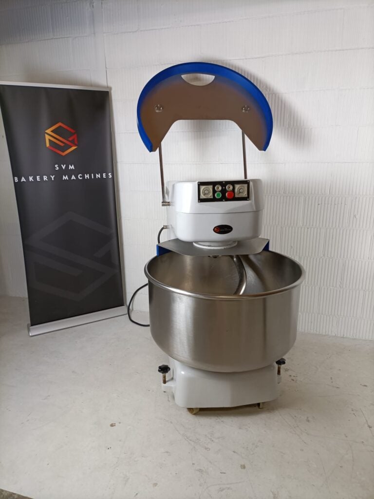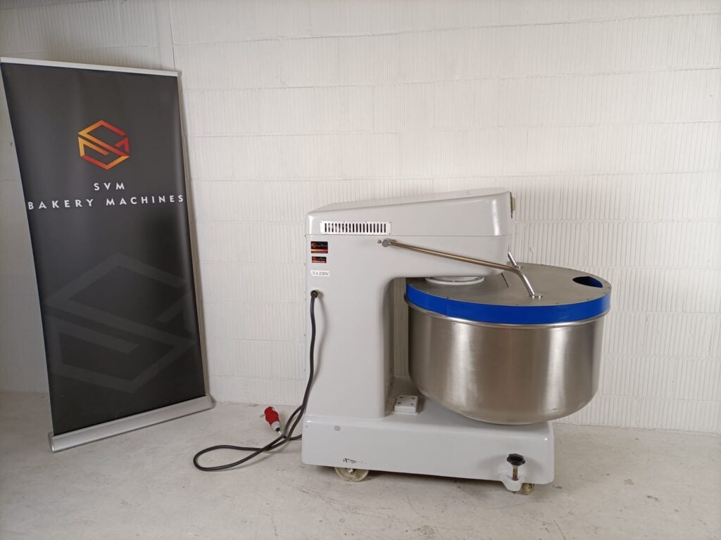 Deze gebruikte Diosna spiraalkneder SP 200 D, is in zeer nette staat. De machine is geschikt voor 200 kg deeg. De spiraalkneder heeft een vaste kuip kom en is verrijdbaar. De kom en spiraal is van RVS.