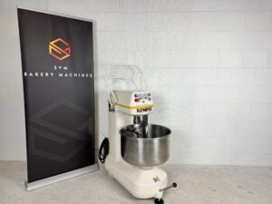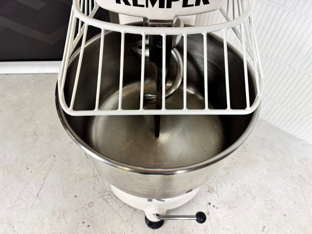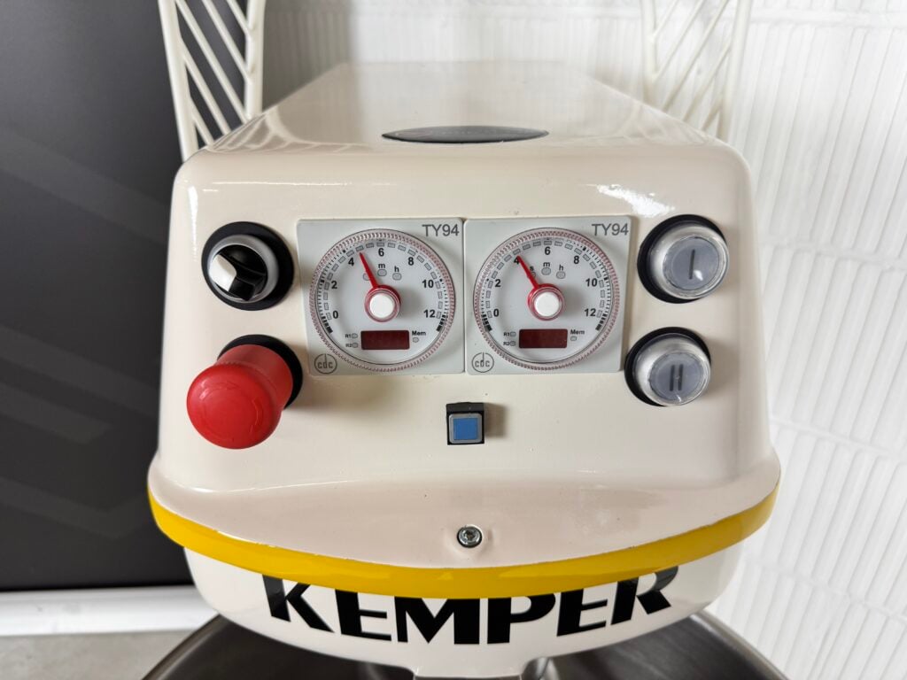 Deze gereviseerde Kemper kneder type SPL30, is geschikt voor 30 kg bloem. De machine is uitgevoerd met twee automatische overschakelbare tijdklokken en veiligheidsrek. De machine is voorzien van nieuwe elektronica, lagers, klokken en is opnieuw gespoten.