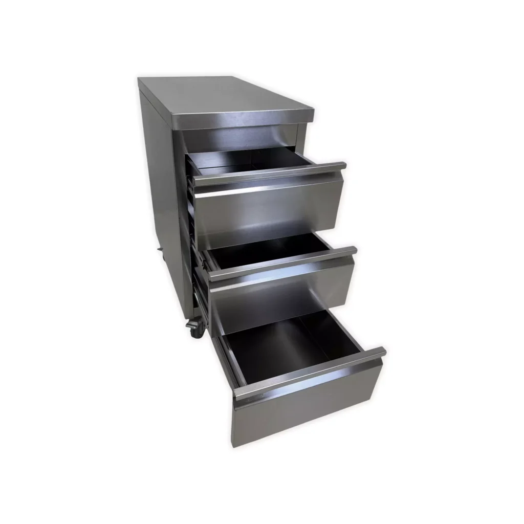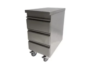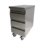 Dit ladeblok is uitgerust met lades, welke ingericht kunnen worden met diverse maten GN bakken. Gemaakt van volledig roestvrij staal (RVS), biedt de werkbank duurzaamheid en hygiëne. Dankzij de 4 zwenkwielen, waarvan 2 geremd, is de werkbank eenvoudig te verplaatsen.