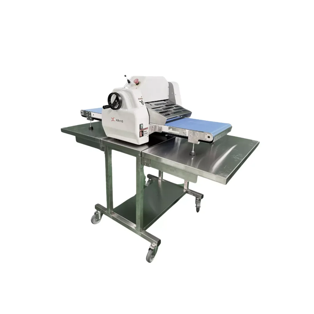 Deze compacte uitroltafel is ideaal voor kleinere producties tot 35 cm . Hij is in het bezit van makkelijk afneembare schrapers en een veiligheidsrooster. Met een joystick bepaal je de uitrolrichting. Ook kan je zeer nauwkeurig de uitrolhoogte afstellen.