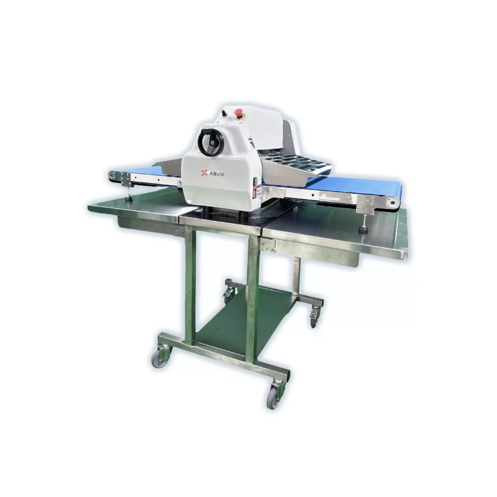 Deze compacte uitroltafel is ideaal voor kleinere producties tot 52 cm . Hij is in het bezit van makkelijk afneembare schrapers en een veiligheidsrooster. Met een joystick bepaal je de uitrolrichting. Ook kan je zeer nauwkeurig de uitrolhoogte afstellen.