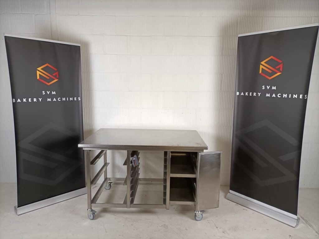Deze praktische werkbank is voorzien van 4 geremde zwenkwielen en volledig gemaakt van RVS.